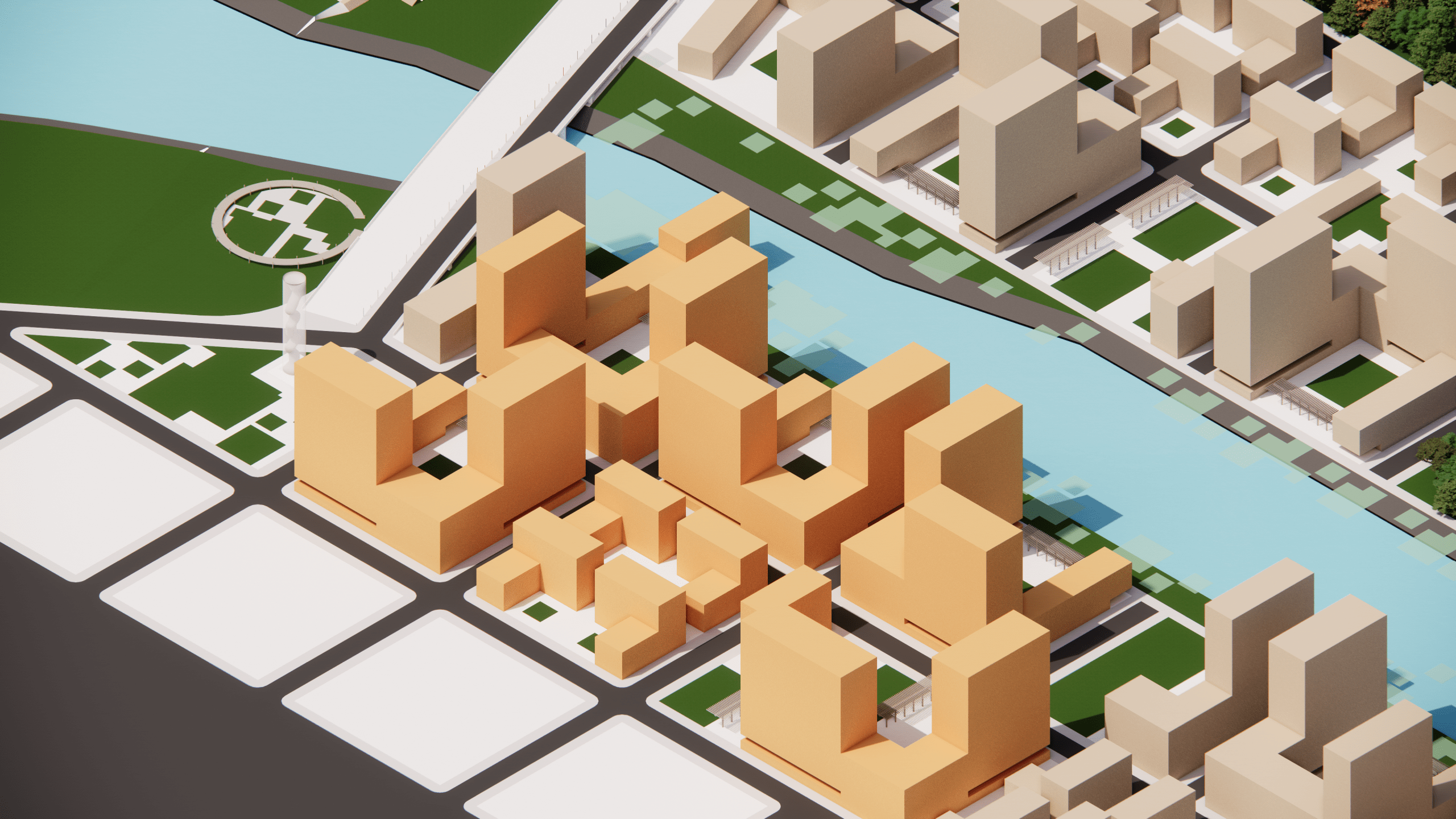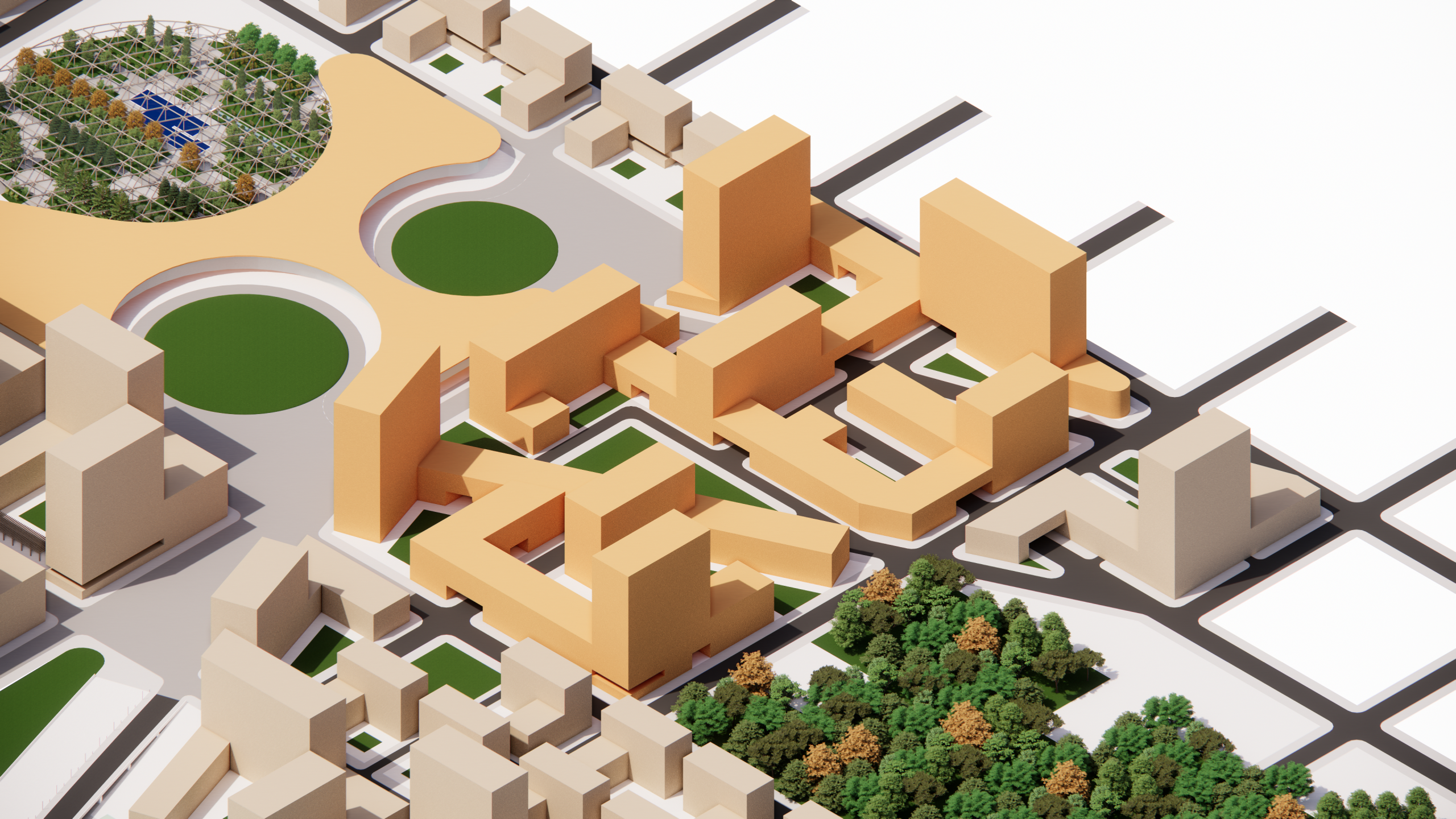 Our proposal replaces the conventional grid of single-family blocks with a decentralized urban scheme, where the “city neighbourhood” is reimagined as a series of fragmented clusters. These smaller neighbourhood “islands” are separated by voids, open/ravine-like corridors that intertwine with streets and pedestrian routes. The voids operate as unclaimed yet collective space, forming fractal patterns of courtyards and public realms that host temporal programs with overlapping cycles of activity. By preventing continuous, undifferentiated massing, these voids allow the city to breathe ecologically, socially, and spatially.