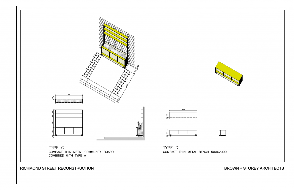 In 2008, our office was commissioned to produce a conceptual design for the improvement of the streetscape on Richmond Street West, just east of Spadina Avenue. This section of one-way street had evolved from an industrial access road -turned- commuter express route into a cultural centre with the reinvigoration of Toronto’s fashion industry and the development of the art and design centre at 401 Richmond.